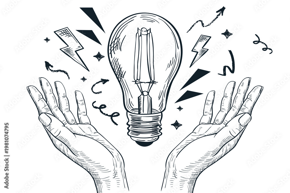 Hands holding light bulb. Successful idea, inspiration and business startup concept. Vector sketch illustrationHands holding light bulb. Successful idea, inspiration and business startup concept. Vect #1981074795