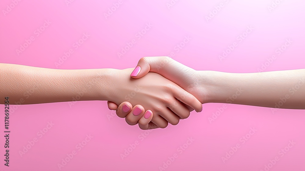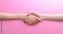 Hands in handshake against pink background. Possible use Business deal illustration. #1178692554