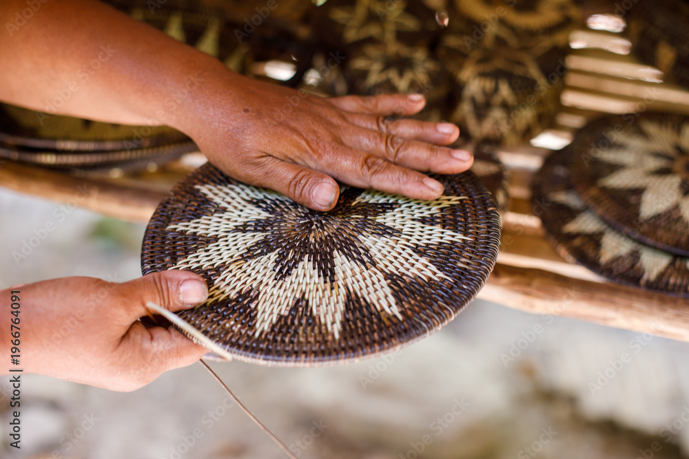 Hands Shaping a Traditional Mangyan Woven Basket Lid #1966764091