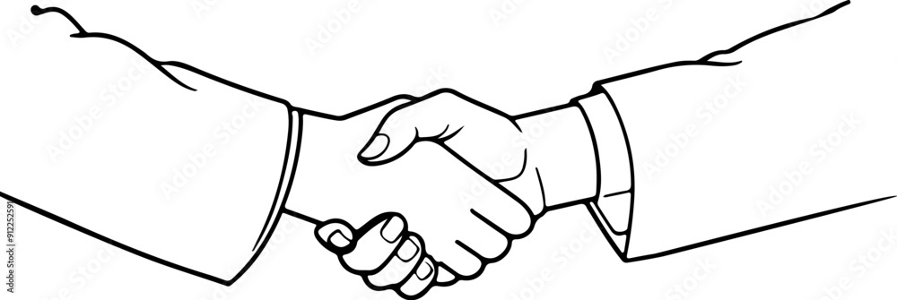 Handshake Trendy Line Art Drawing. Business Concept Minimalistic Black Lines Drawing on White Background. Handshake Line Abstract Drawing for Modern Design. Vector EPS 10 #912252591