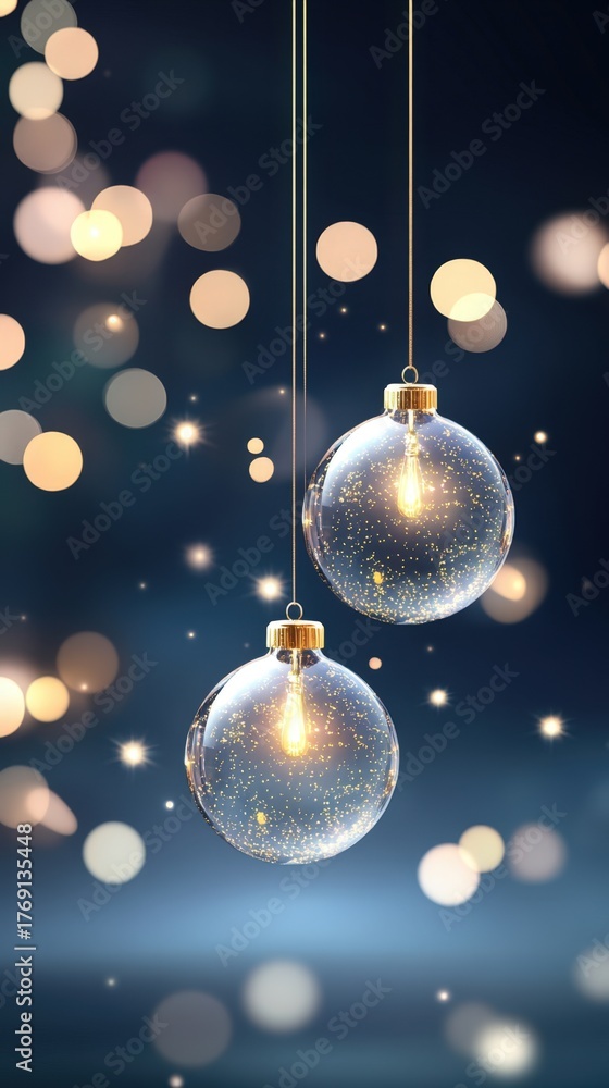 Hanging Ornaments with Soft Glowing Light on Dark Bokeh Background, Perfect for Holiday Celebrations and Festive Decor #1769135448