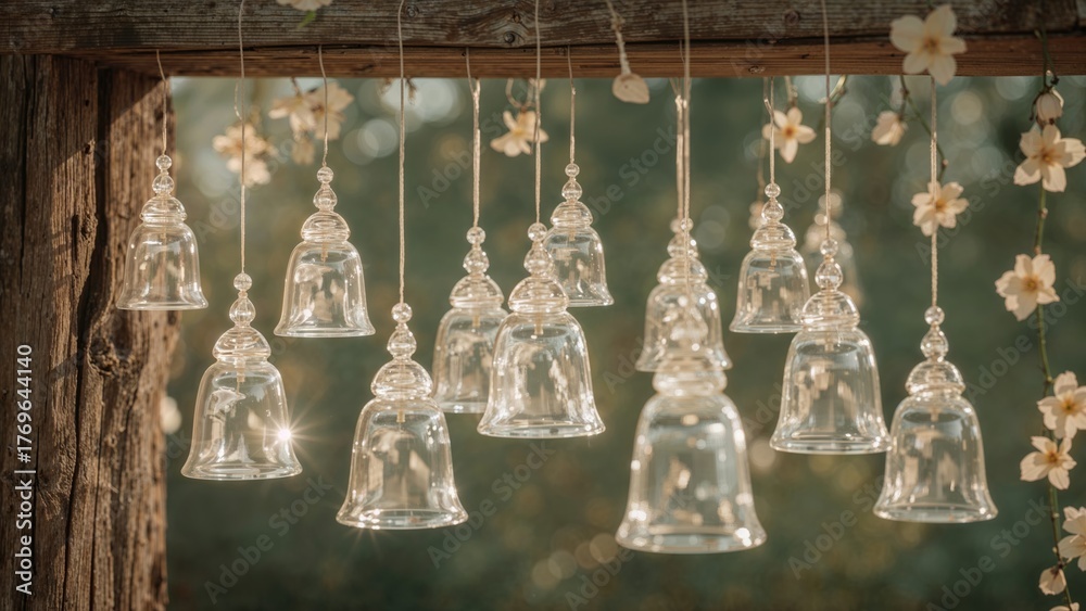 Hanging wind chimes shaped like small glass bells with flowers #1769644140