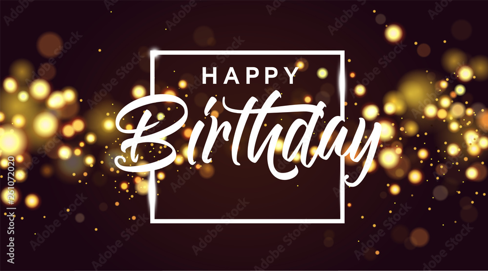 Happy birthday golden bokeh sparkle glitter luxury glamor background. Abstract defocused circular party magic birthday. Glamorous elegant shiny background for birthday design for invitation or flyer. #261072020