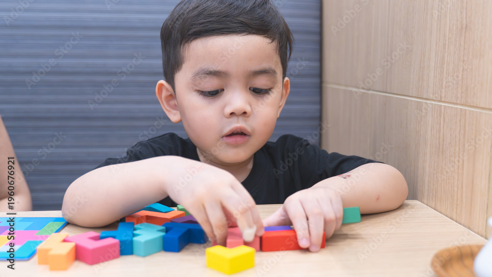Happy Child Playing with Colorful Blocks #1960676921