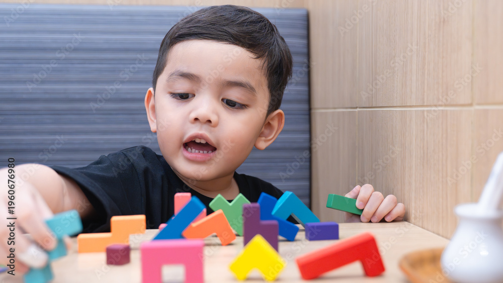 Happy Child Playing with Colorful Blocks #1960676980
