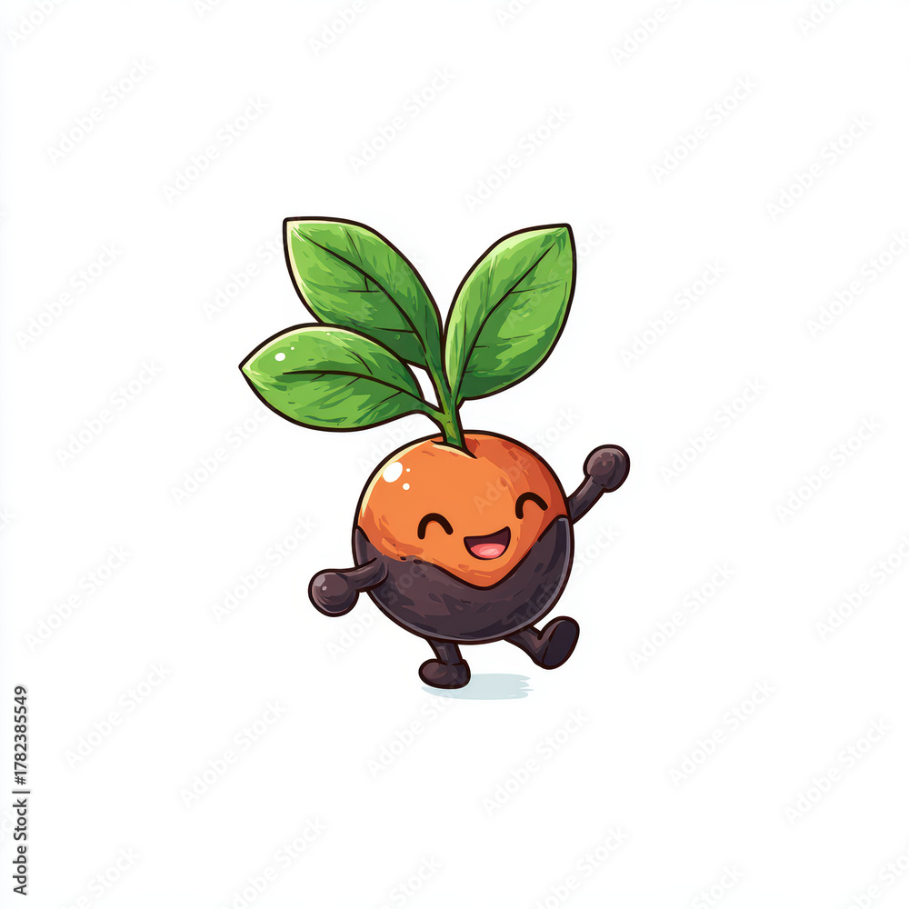 Happy cute isometric cartoon sapote character with arms and legs, expressing joy and playfulness in vibrant design #1782385549