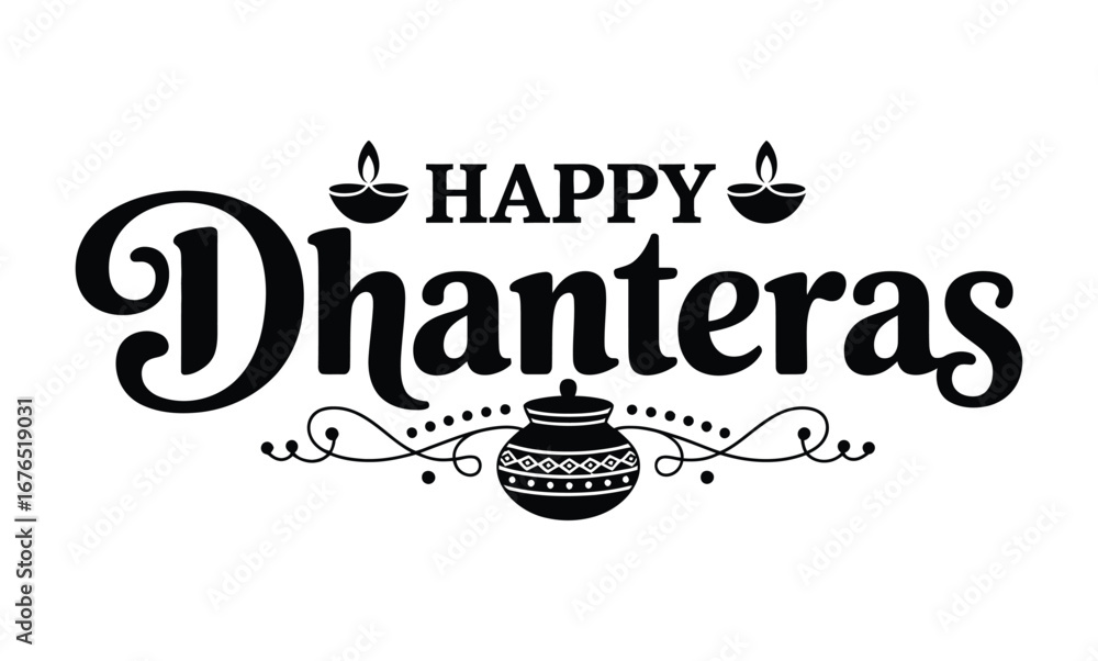 Happy dhanteras festival celebration with decorative elements and pot silhouette #1676519031