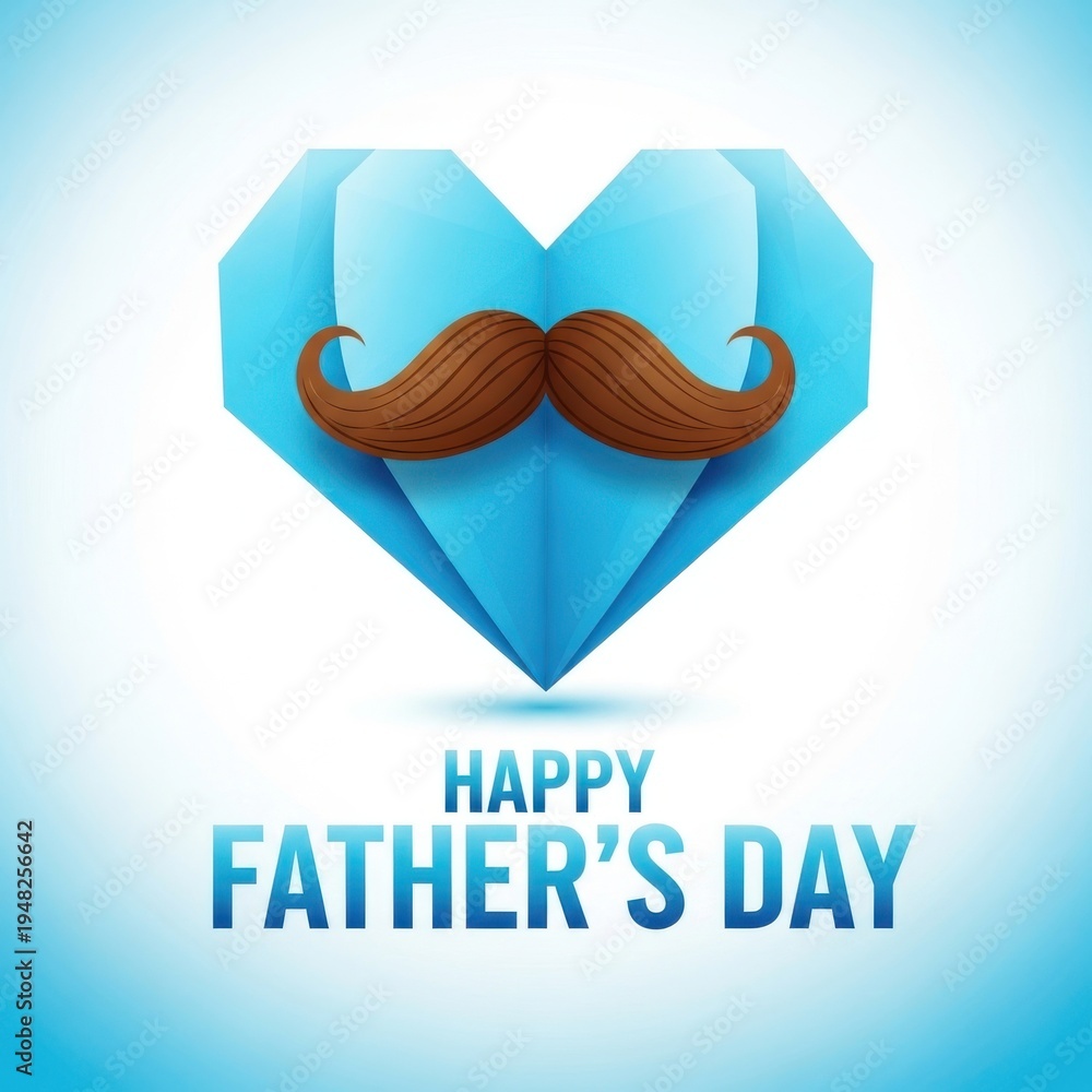 Happy fathers day greeting card with mustache and heart symbol on white background #1948256642