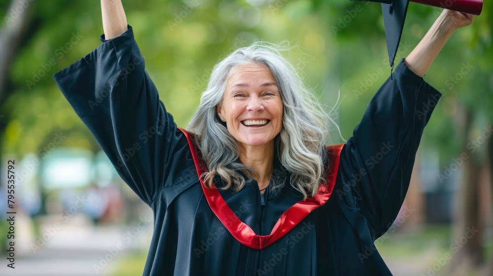Happy grandmother with a graduation gown at her university graduation in high resolution and high quality. concept degrees, third age #795535792