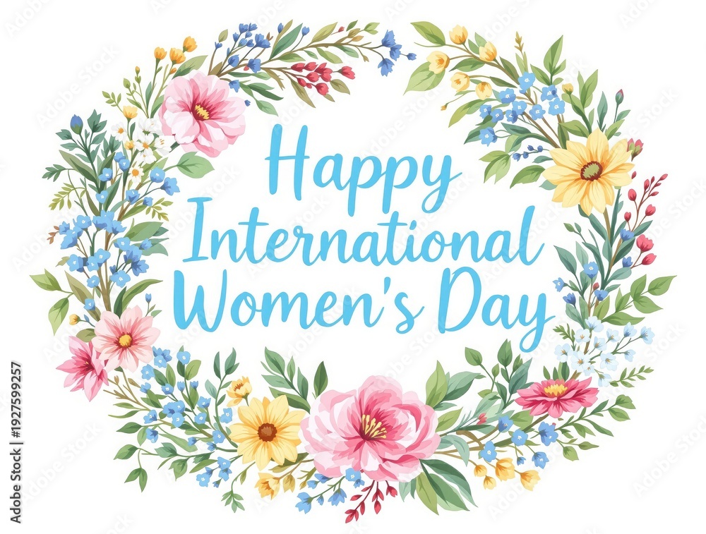 Happy International Women's Day colorful floral wreath illustration #1927599257