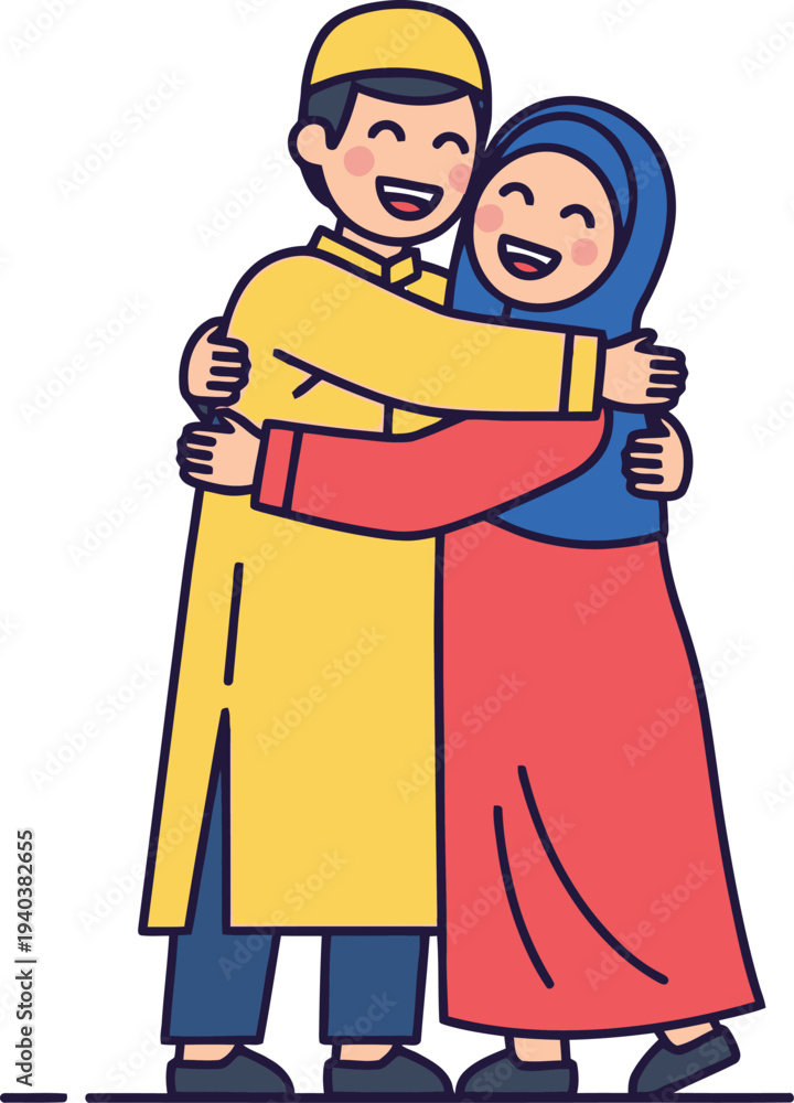 Happy muslim couple hugging during festive celebration #1940382655
