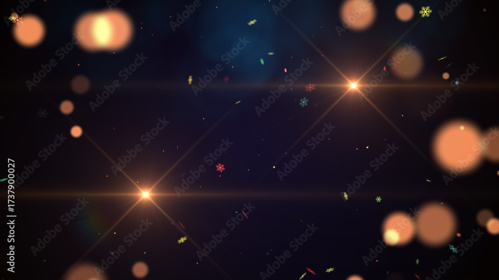 Happy New Year Abstract festive background with glowing light flares, colorful sparkles, and soft bokeh effects on a dark backdrop, creating a magical holiday atmosphere. #1737900027
