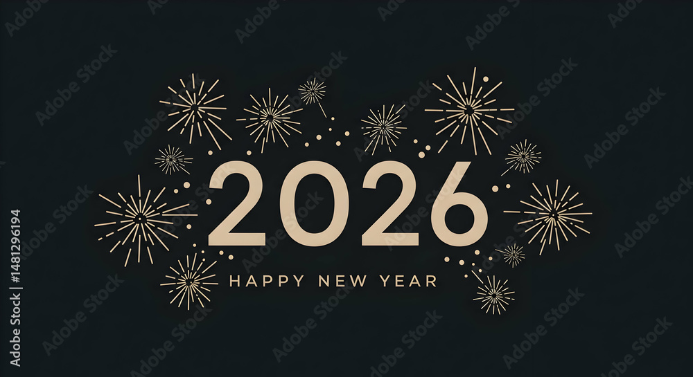 Happy New Year 2026 Elegant Fireworks Celebration Gold Design Festive Holiday Greeting Card #1481296194