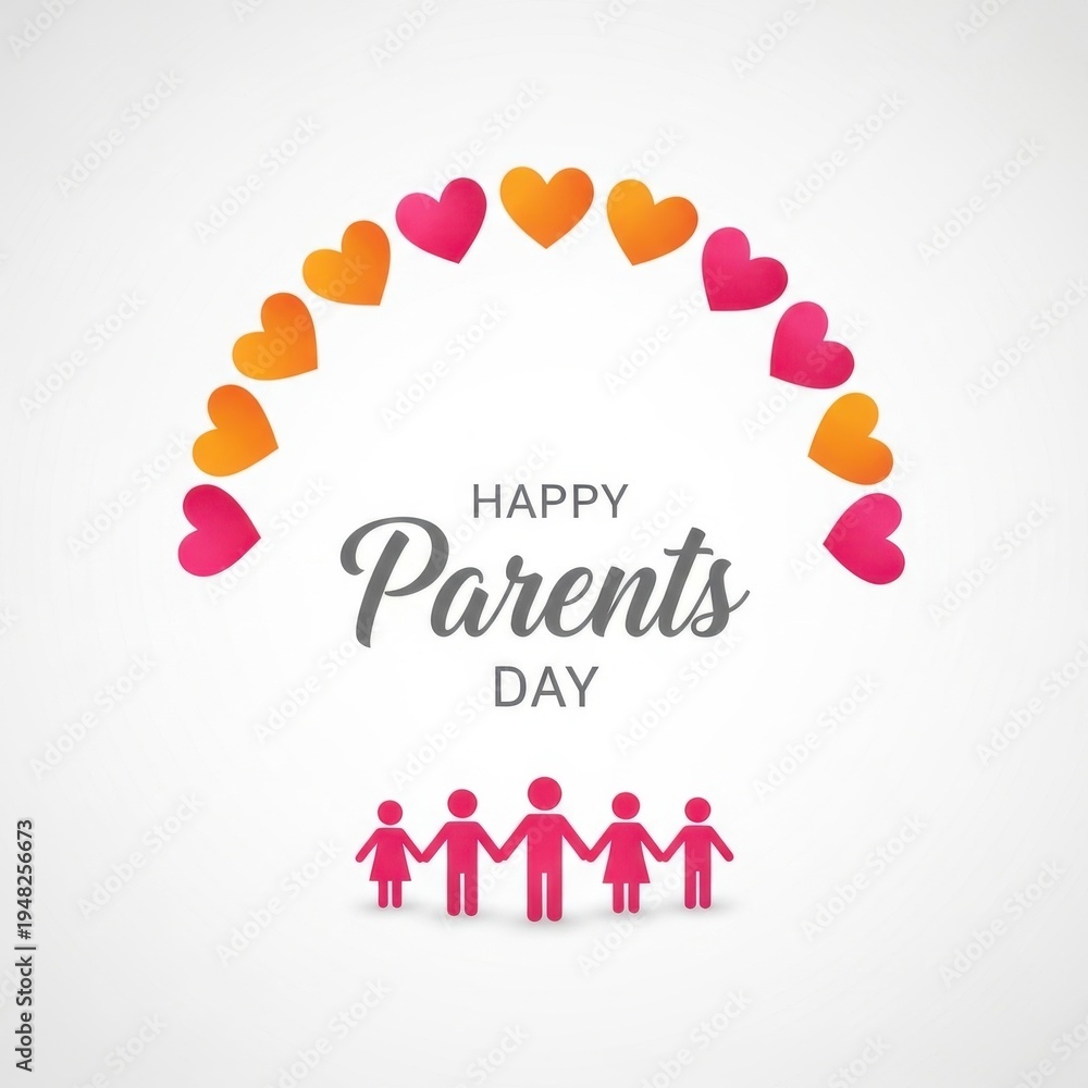 Happy parents day celebration with colorful hearts and family icons on white #1948256673