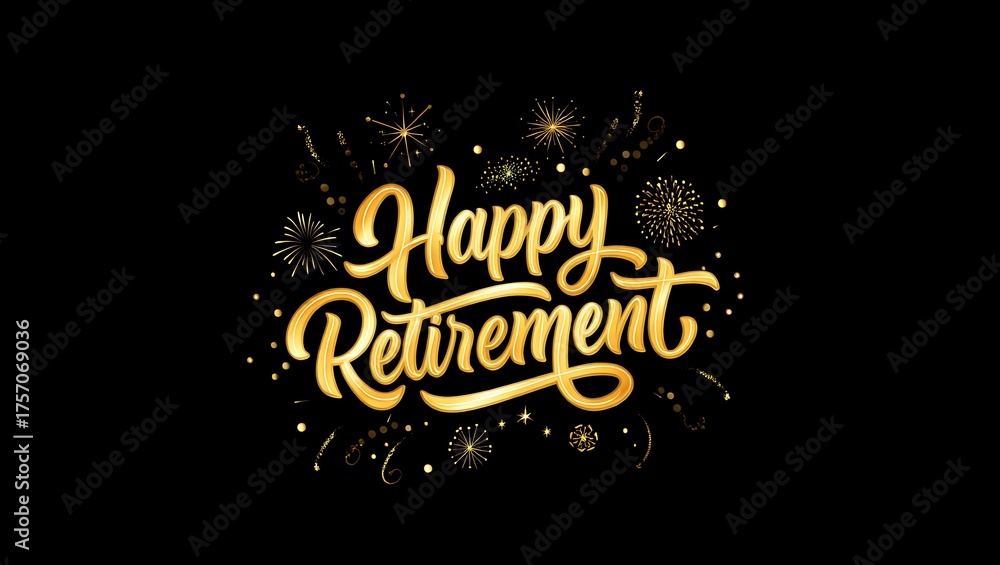 Happy Retirement golden lettering with festive fireworks on black background #1757069036