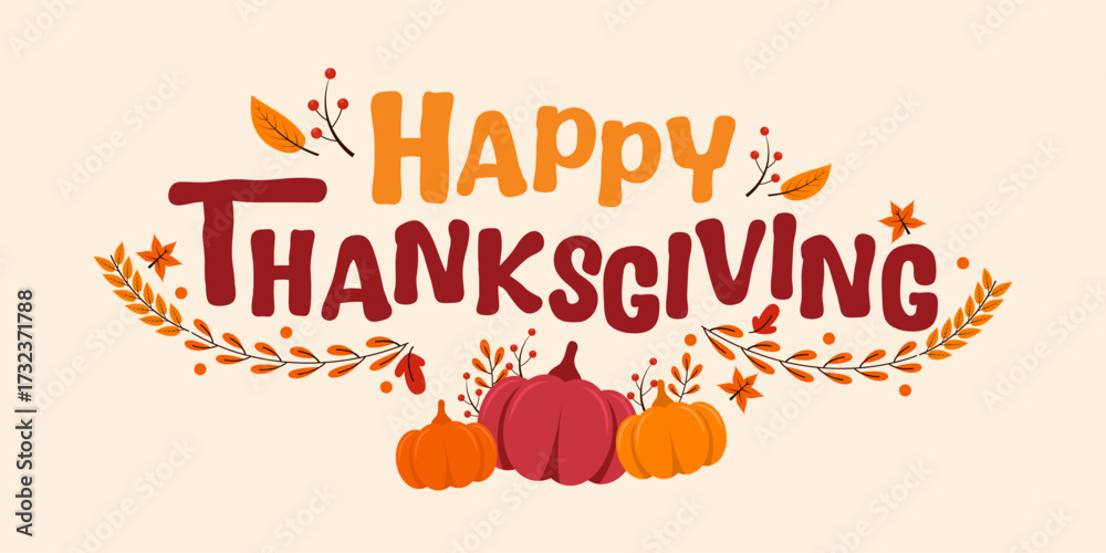 Happy Thanksgiving Day calligraphy background in a flat design with pumpkin #1732371788