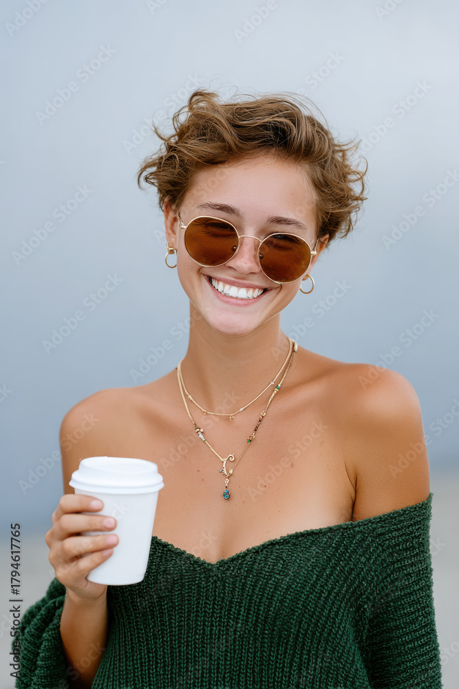 Happy woman holding coffee cup smiling outdoors #1794617765