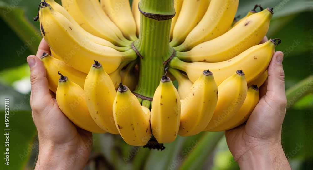 Harvesting green bananas for agricultural industry and food production #1971527111