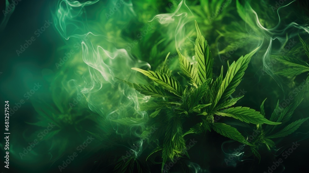 Hazy smoke backdrop with cannabis marijuana buds. #681257524