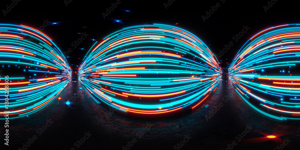HDRI. Glowing neon lines. Full spherical panorama 360 degrees. 3D render illustration. #1304288306