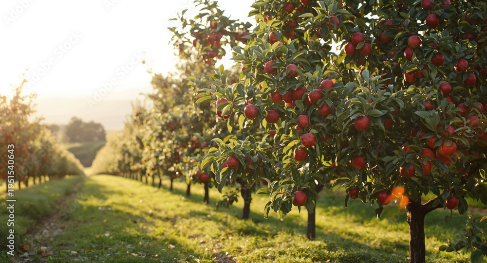 Healthy apple trees bearing fully developed fruits #1951540643
