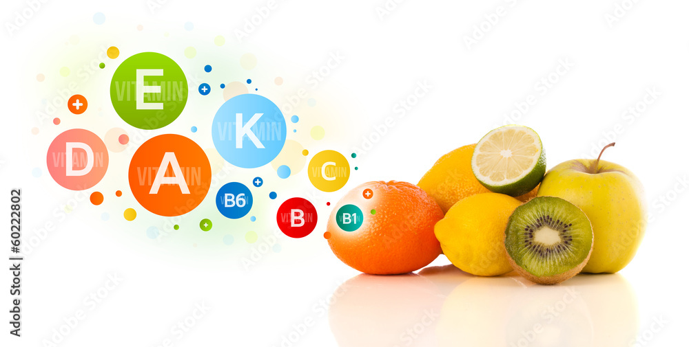 Healthy fruits with colorful vitamin symbols and icons #60222802