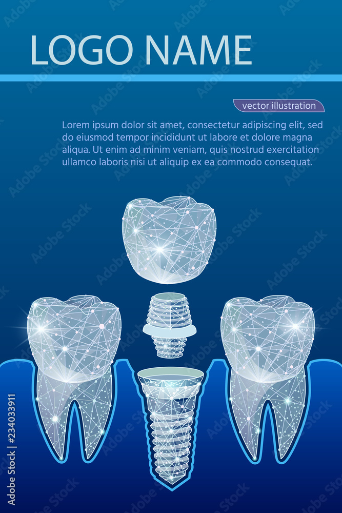 Healthy teeth and dental implant. Dentistry. Implantation of human teeth. Vector illustration #234033911