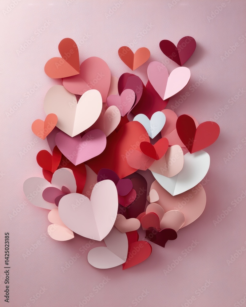 Heartfelt Delight A Cascade of Paper Cut Hearts in Romantic Hues Celebrating Love Valentine's Day and Affectionate Bonds #1425023185