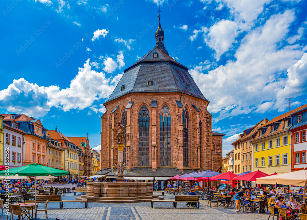Heidelberg market place and Church of the Holy Spirit in the background. Baden-Württemberg, Germany, , Europe. #520832552