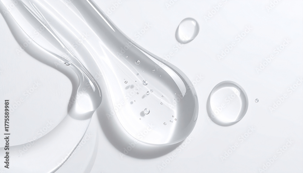 透明な美容液のテクスチャーを捉えた高精細なクローズアップ。保湿・肌バリアケアの化粧品広告向け背景素材 / High-resolution close-up of clear serum texture, moisturizing and skin barrier care cosmetic background #1775589981