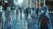 High tech view of a crowded city sidewalk with digital markers on each person AI recognizing faces and behaviors dynamically #796764040