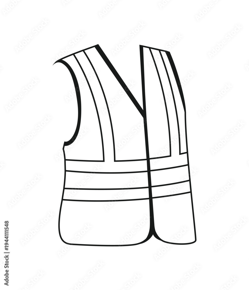 High Visibility Safety Vest Outline Illustration. Reflective Yellow Personal Protective Equipment (PPE) for Construction Workers and Site Safety. Coloring Book Page Template. #1944111548
