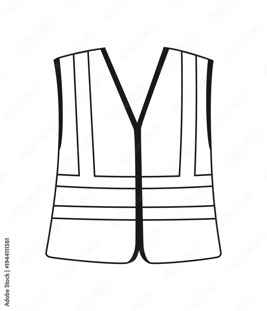 High Visibility Safety Vest Outline Illustration. Reflective Yellow Personal Protective Equipment (PPE) for Construction Workers and Site Safety. Coloring Book Page Template. #1944111581
