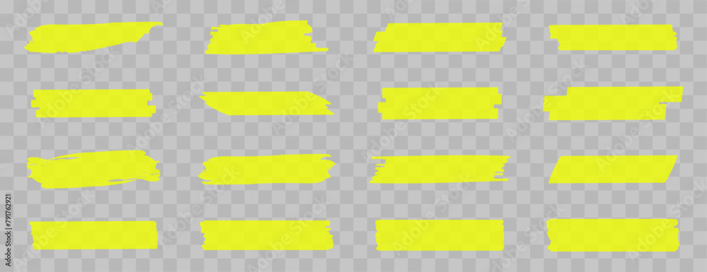 Highlight marker lines. Marker yellow strokes. Hand drawn marker strokes. Text marker stripes. Text highlights and underlining. Brush lines. #791762921