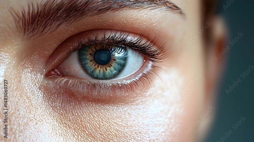 Highly detailed and 3D medical visualization showcasing the intricate anatomy of the eyelid including the muscle fat pads and skin layers involved in various aesthetic treatments and procedures #1483060727