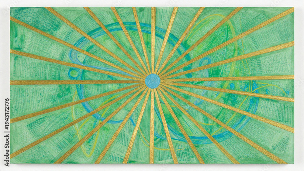 Hintergrund mit einer Sonne, die ihre goldenen Strahlen sendet, grüner Hintergrund #1943172776