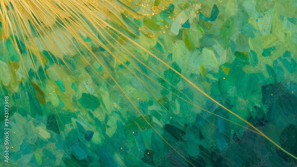 Hintergrund mit goldenen Strahlen vor grünem Design #1943173918