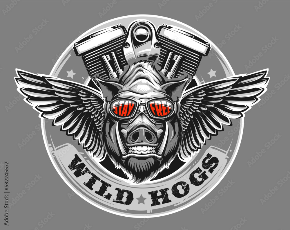 Hog with motorcycle engine and wings #532245577