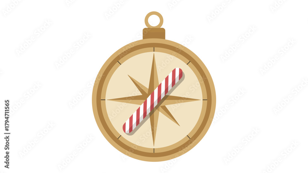 Holiday Compass: a whimsical holiday compass guiding towards festive celebrations and joy, featuring a candy cane needle and a traditional design, perfect for holiday greetings. #1794711565