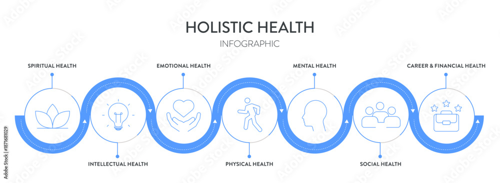 Holistic Health framework infographic diagram chart illustration banner template with icon set vector has physical, mental, social, spiritual, intellectual and emotional. Health and well being concept #1871681029