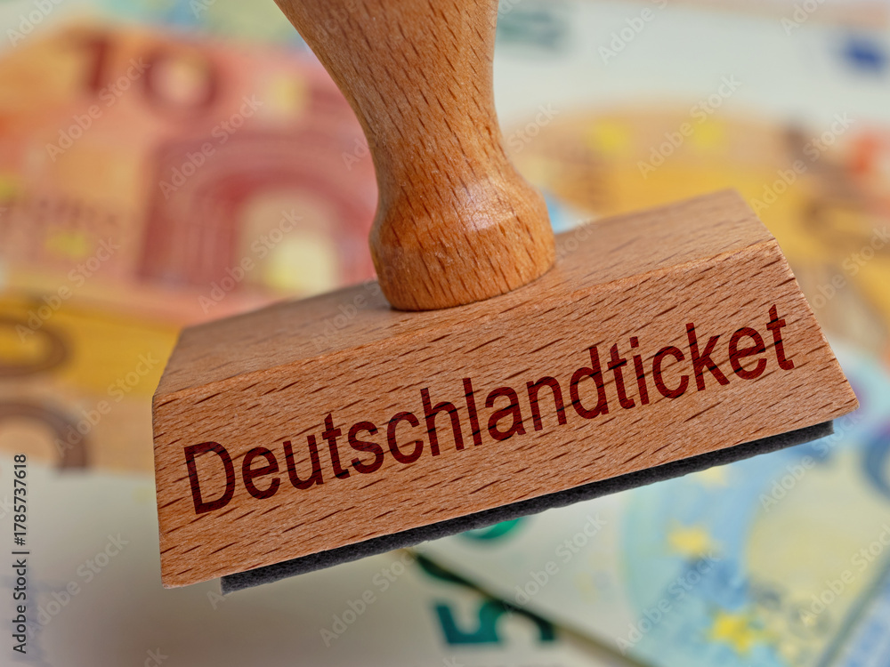 Holzstempel mit der Aufschrift „Deutschlandticket“ #1785737618