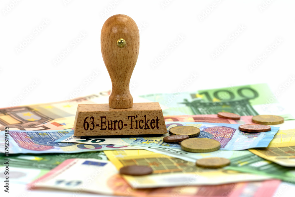 Holzstempel mit der Aufschrift "63-Euro-Ticket" #1792319185