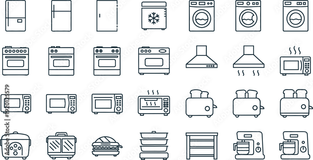 • #1920125579 Home kitchen appliances line icon set editable stroke vector illustration isolated on white background collection