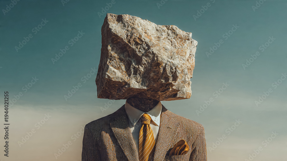Homme à tête de pierre portant un costume avec cravate #1944021255