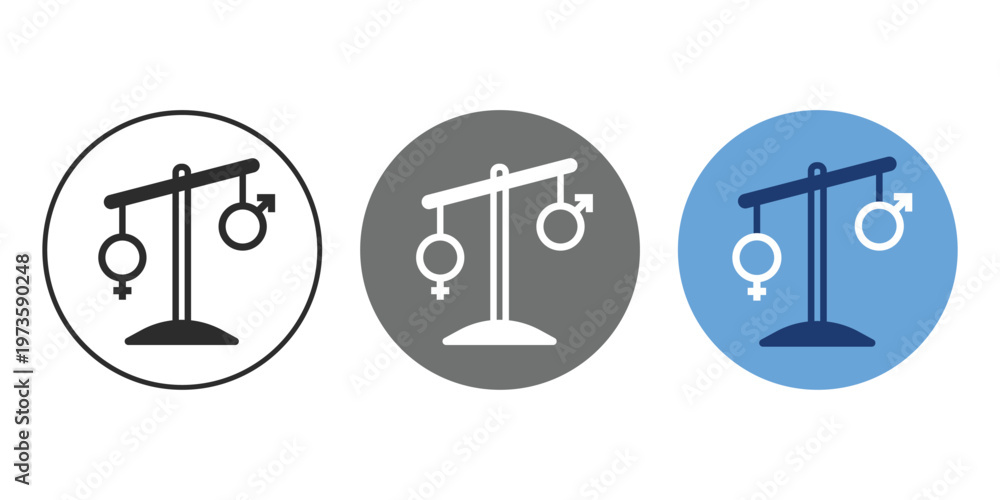Hormonal balance icon with gender equality scales symbol in black gray and blue color isolated on light background. Concept of endocrine system, hormone regulation, male and female balance, reproducti #1973590248