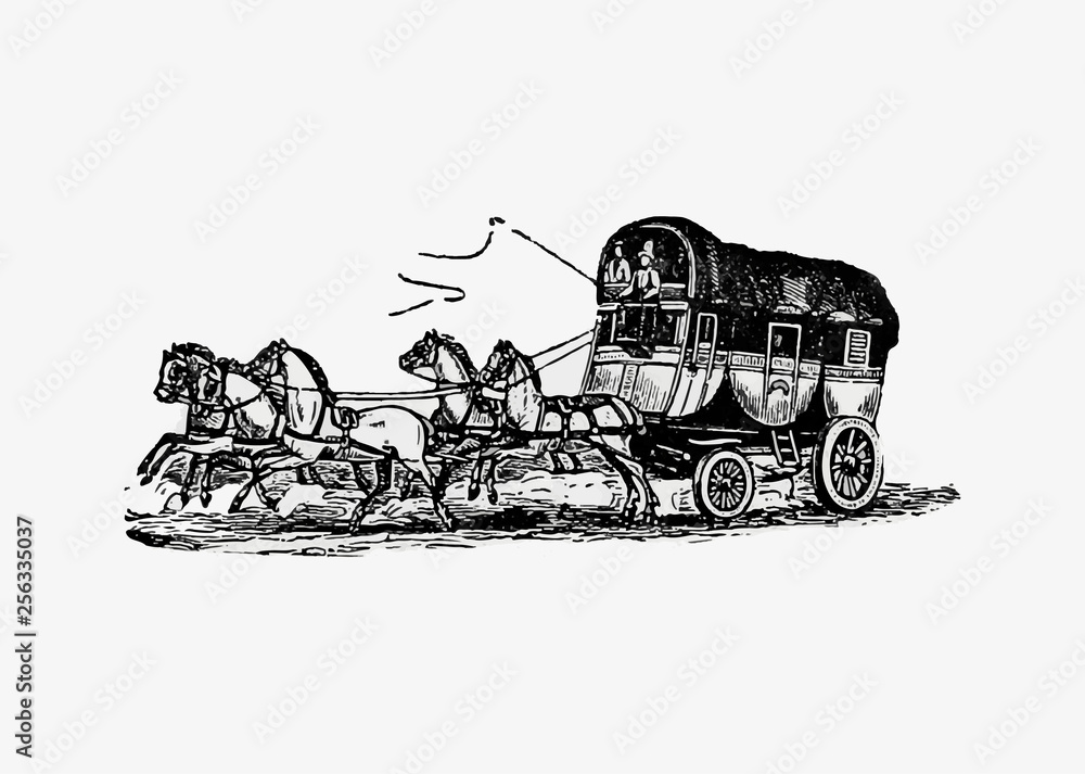 Horse carriage vintage drawing #256335037