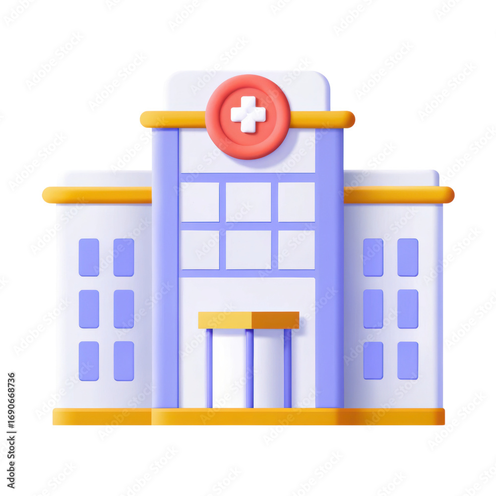 Hospital building icon with medical cross symbol, colorful 3D render of healthcare center, bright and clean design #1690668736