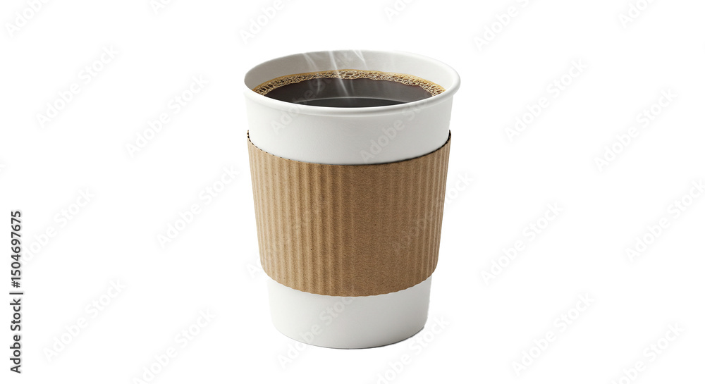 Hot coffee in paper cup with sleeve for morning caffeine boost takeaway coffee shop drink isolated on transparent background #1504697675