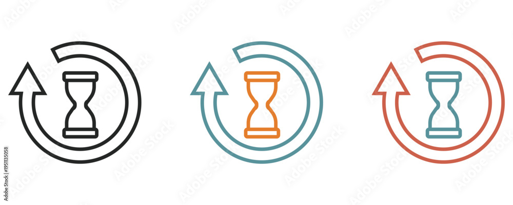 Hourglass refresh icons, hourglass icon surrounded by a circular arrow isolated on white background. #1951135058