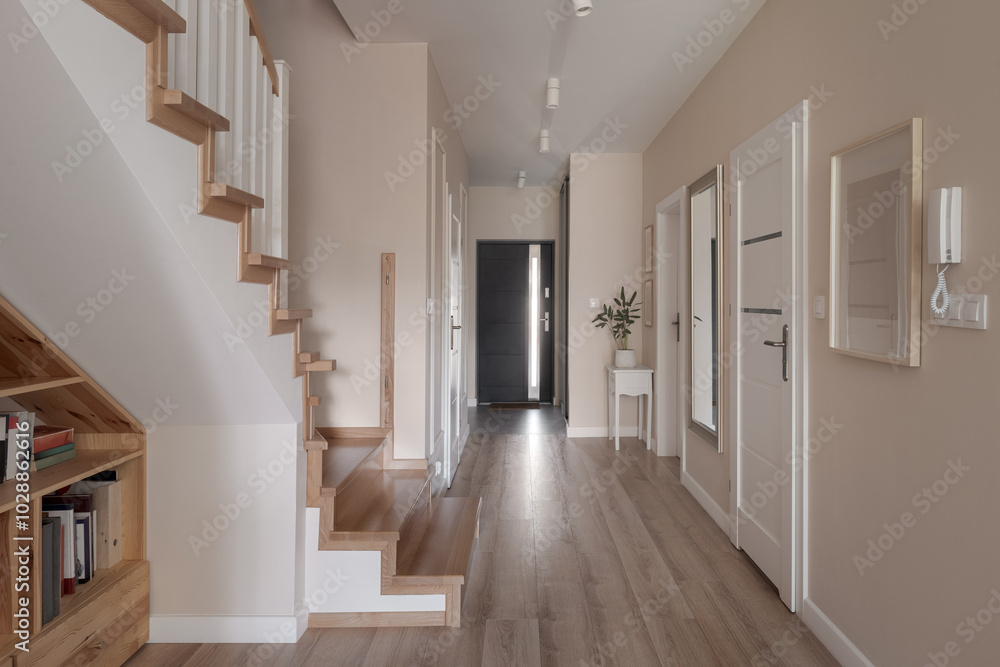 House corridor with entry and staircase #1028862616